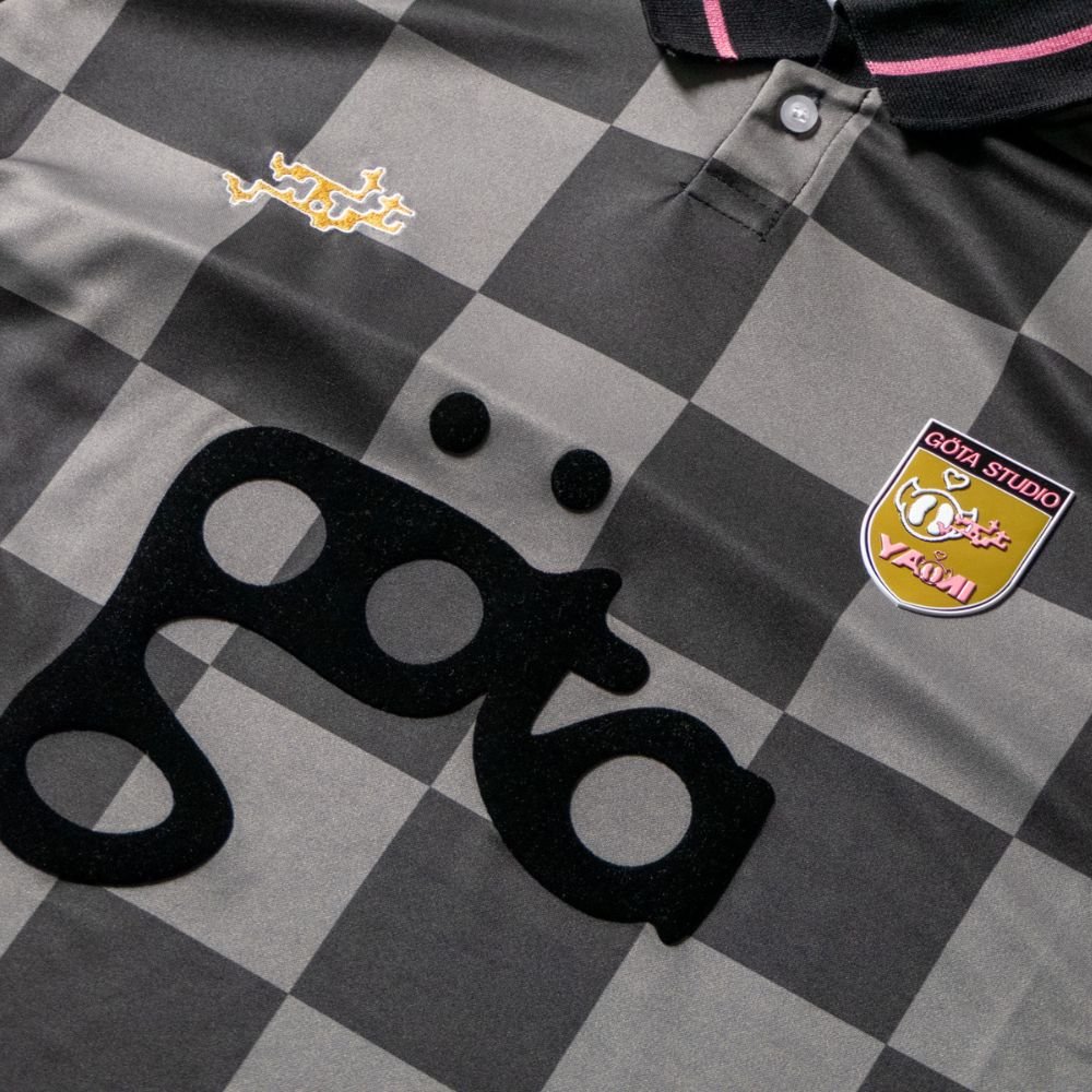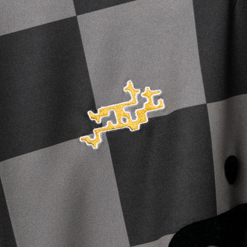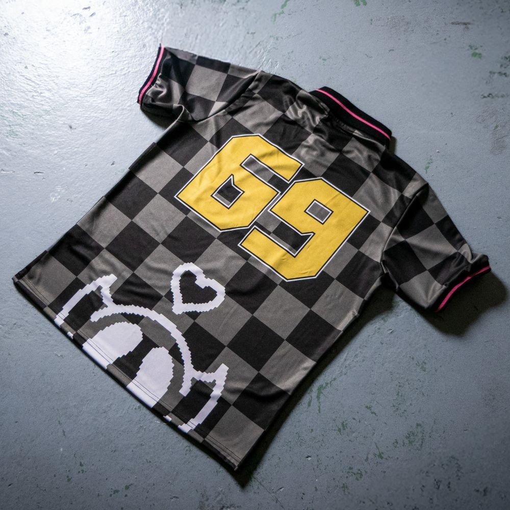 Ce maillot de football mode joue sur une esthétique graphique forte avec un motif à carreaux noirs et gris qui couvre l’ensemble de la pièce. Le rendu est sobre, moderne et très visuel, inspiré à la fois du sport et du streetwear.